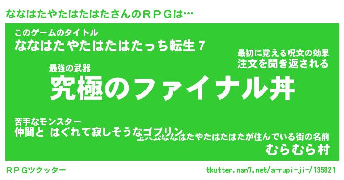 | ヒーロー風カッコイイあだ名 | 『スーパーナナハタヤタハタハタ』 |