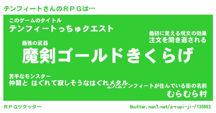 | ヒーロー風カッコイイあだ名 | 『スーパーテンフィート』『幻影騎士テン』 |