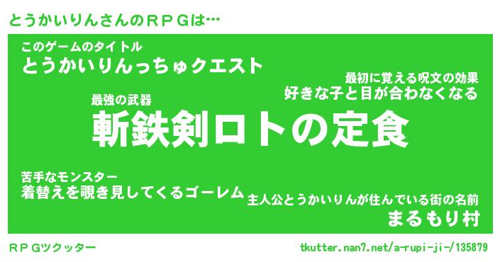 | 男性向けラノベタイトル風あだ名 | 『とうかいりんの憂鬱』 |
