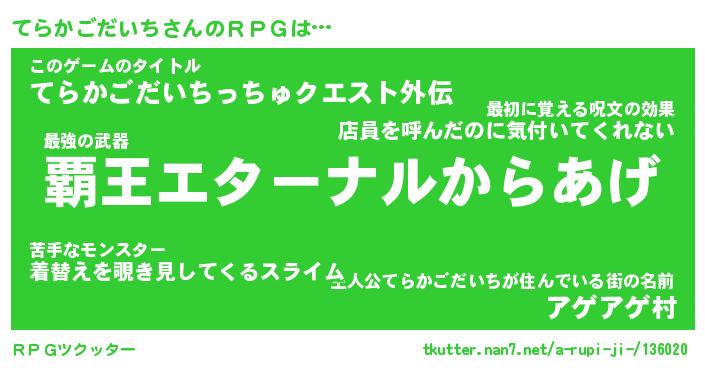| 胡散臭い通販商品みたいなあだ名 | 『億万長者になれる水晶球…その名も「てらかごだいち」』 |