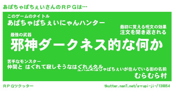 | 伝説のあだ名 | 『封印されし傭兵あぱちゃぱちぇい』 |