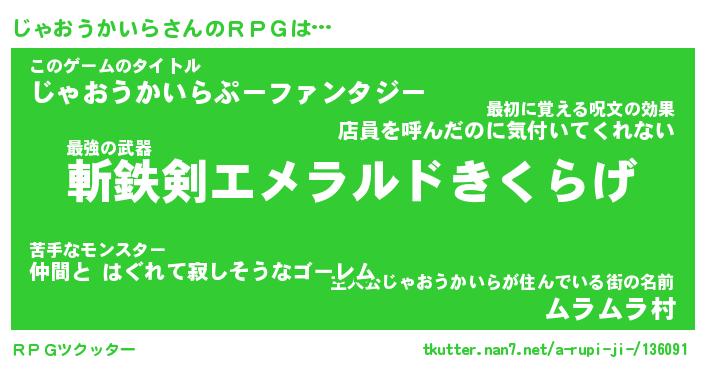 | 胡散臭い通販商品みたいなあだ名 | 『必ず成功する霊験あらたかなお札…その名も「じゃおうかいら」』 |