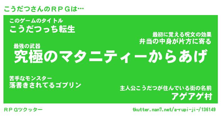 | ファンタジー風あだ名 | 『コウフェル』『エターナルコウダツー』 |