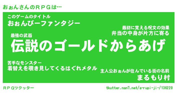 | 料理風あだ名 | 『節約★おぉんと油揚げの玉子丼』 |