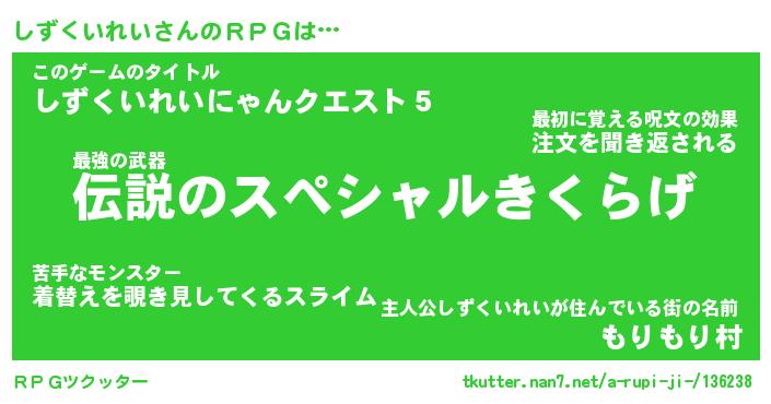| ヒーロー風カッコイイあだ名 | 『スーパーシズクイレイ』『暗黒騎士シズ』 |