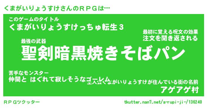 | 胡散臭い通販商品みたいなあだ名 | 『必ず成功する水晶球…その名も「くまがいりょうすけ」』 |