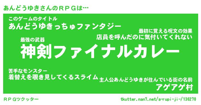 | 料理風あだ名 | 『節約★あんどうゆきと油揚げの玉子丼』 |