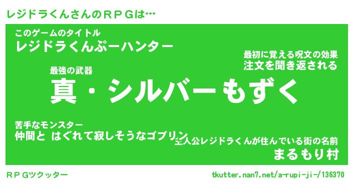 | 男性向けラノベタイトル風あだ名 | 『レジドラクンアートオンライン』 |