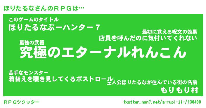 | 男性向けラノベタイトル風あだ名 | 『ほりたるなの憂鬱』 |