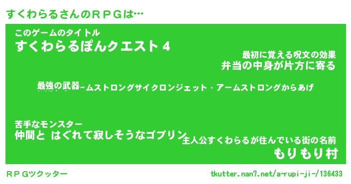 | ファンタジー風あだ名 | 『スクフェル』『エターナルスクワラルー』 |