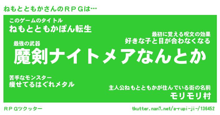 | 胡散臭い通販商品みたいなあだ名 | 『必ず成功する霊験あらたかなお札…その名も「ねもとともか」』 |