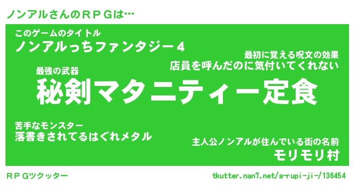| ファンタジー風あだ名 | 『ノンフェル』『エターナルノンアルー』 |