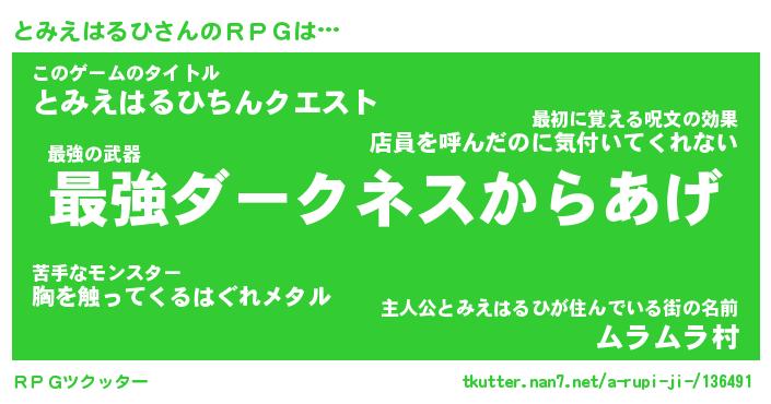 | 男性向けラノベタイトル風あだ名 | 『トミエハルヒアートオンライン』 |