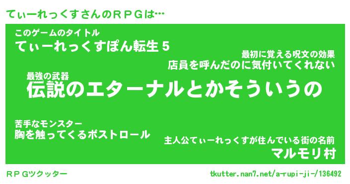 | 男性向けラノベタイトル風あだ名 | 『てぃーれっくすの憂鬱』 |