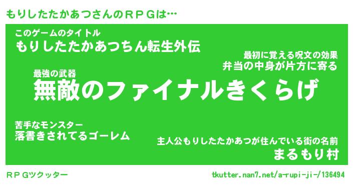 | 男性向けラノベタイトル風あだ名 | 『モリシタタカアツアートオンライン』 |