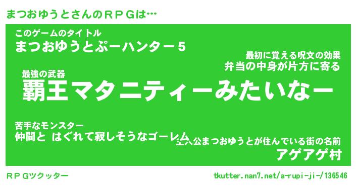 | 伝説のあだ名 | 『封印されしスナイパーまつおゆうと』 |