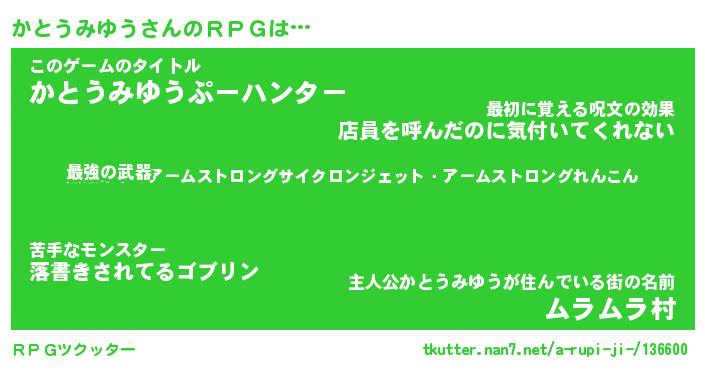 | ヒーロー風カッコイイあだ名 | 『スーパーカトウミユウ』『天弓騎士カト』 |