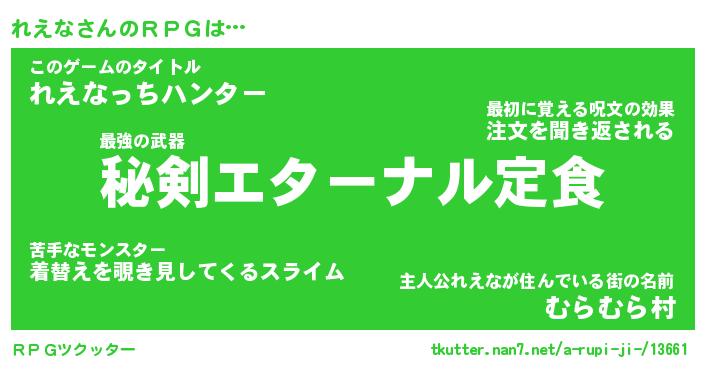 | ファンタジー風あだ名 | 『レエフェル』『エターナルレエナー』 |