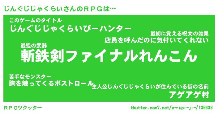| 男性向けラノベタイトル風あだ名 | 『じんぐじじゃくらいの憂鬱』 |