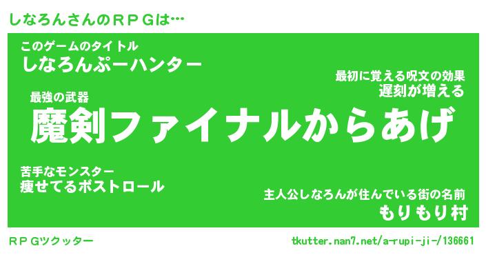 | 伝説のあだ名 | 『伝説の竜騎士しなろん』 |