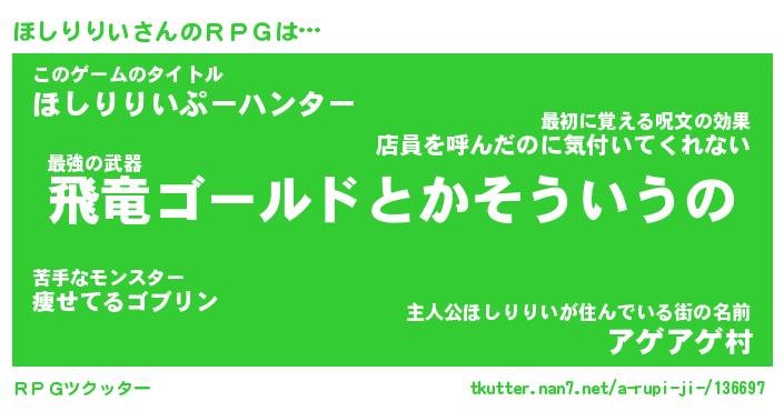 | 男性向けラノベタイトル風あだ名 | 『ホシリリイアートオンライン』 |