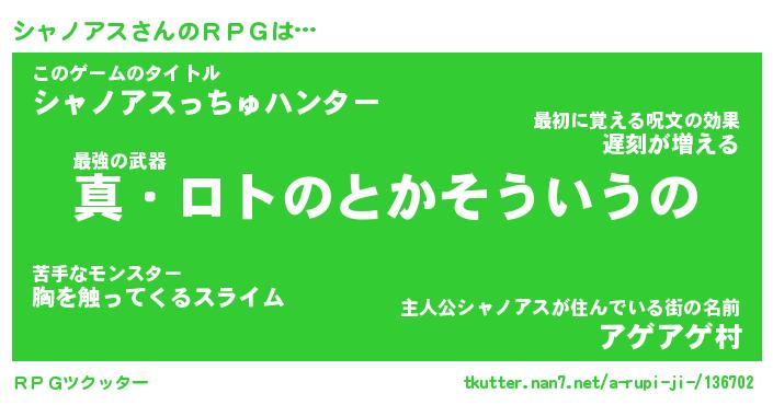| 男性向けラノベタイトル風あだ名 | 『シャノアスアートオンライン』 |
