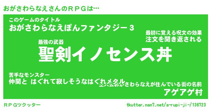 | 胡散臭い通販商品みたいなあだ名 | 『必ず成功する霊験あらたかなお札…その名も「おがさわらなえ」』 |