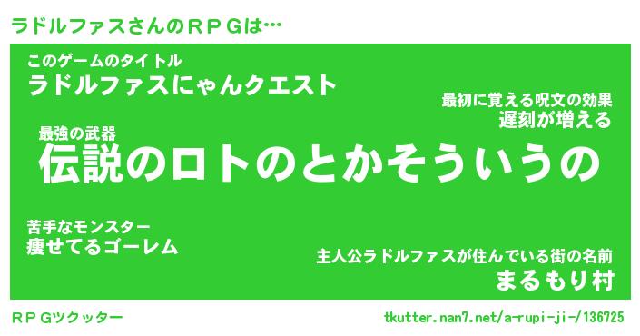 | ヒーロー風カッコイイあだ名 | 『スーパーラドルファス』『幻影騎士ラド』 |