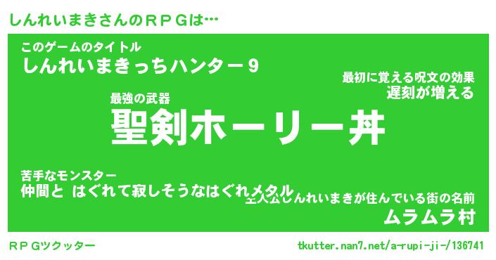 | 男性向けラノベタイトル風あだ名 | 『しんれいまきの憂鬱』 |