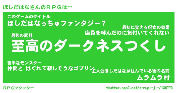 | ファンタジー風あだ名 | 『ホシフェル』『エターナルホシダハナー』 |