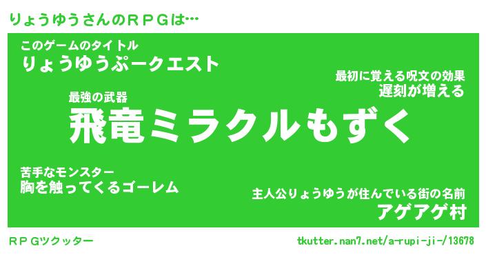| ファンタジー風あだ名 | 『リョフェル』『エターナルリョウユウー』 |