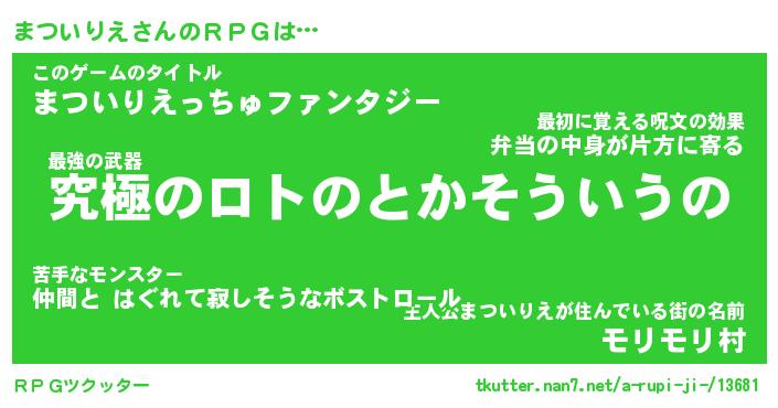 | ファンタジー風あだ名 | 『マツフェル』『エターナルマツイリエー』 |