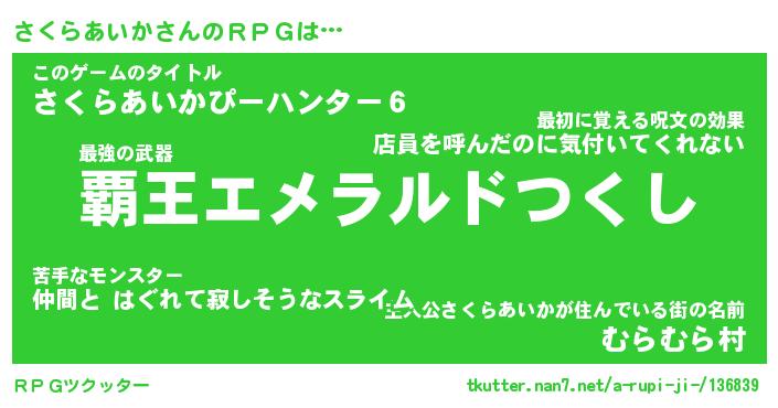 | ヒーロー風カッコイイあだ名 | 『スーパーサクラアイカ』『魔戒騎士サク』 |