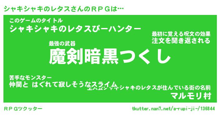 | ツイッター | シャキシャキのレタスさんのツイッターID『konnyaku_idle』 |