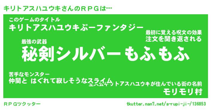 | 胡散臭い通販商品みたいなあだ名 | 『必ず成功する水晶球…その名も「キリトアスハユウキ」』 |