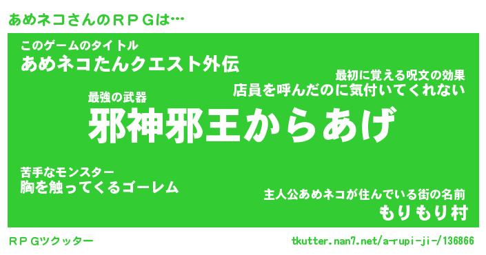 | ファンタジー風あだ名 | 『アメフェル』『エターナルアメネコー』 |