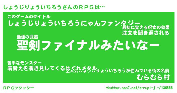 | 男性向けラノベタイトル風あだ名 | 『しょうじりょういちろうの憂鬱』 |
