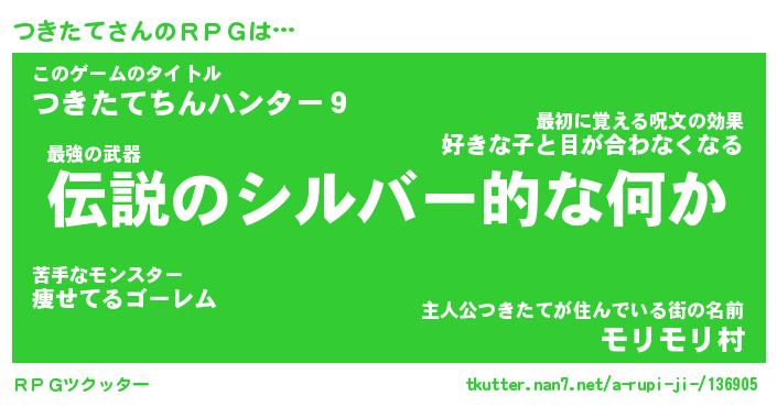 | 男性向けラノベタイトル風あだ名 | 『つきたての憂鬱』 |