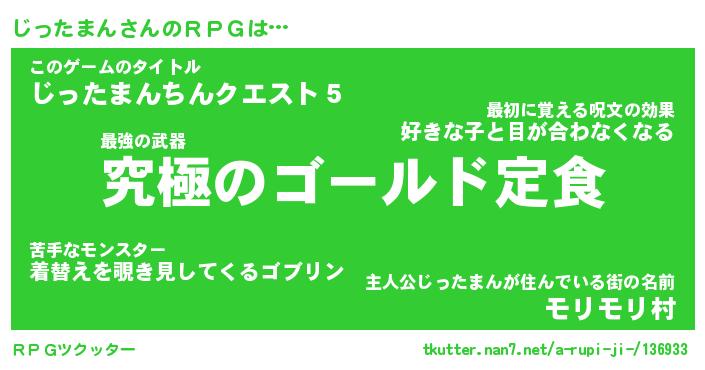 | 男性向けラノベタイトル風あだ名 | 『じったまんの憂鬱』 |