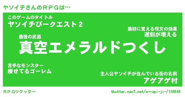 | 男性向けラノベタイトル風あだ名 | 『ヤソイチアートオンライン』 |