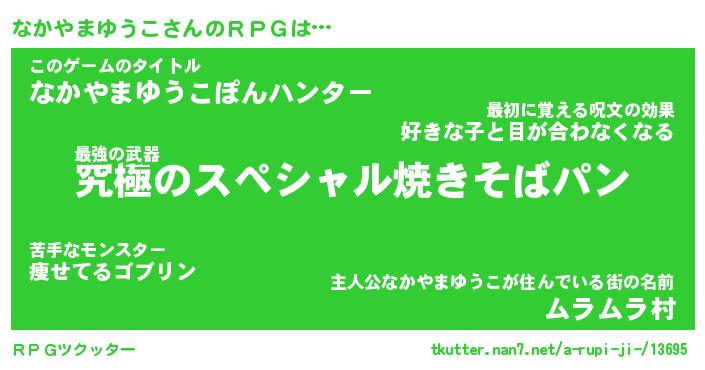 | 女子向けラノベタイトル風あだ名 | 『なかやまゆうこ姫と円卓の騎士』 |