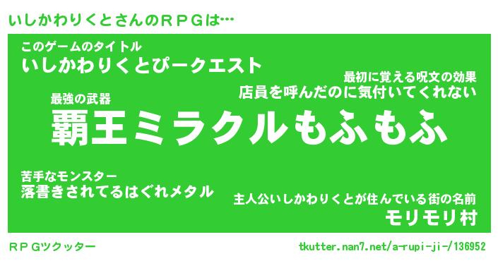 | 男性向けラノベタイトル風あだ名 | 『イシカワリクトアートオンライン』 |