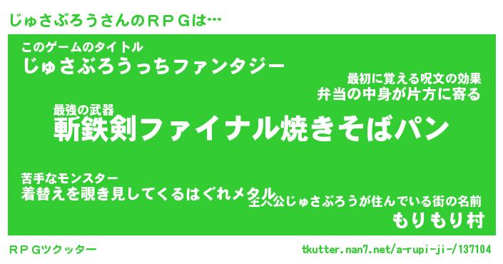 | 男性向けラノベタイトル風あだ名 | 『じゅさぶろうの憂鬱』 |