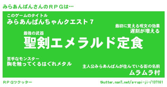 | 胡散臭い通販商品みたいなあだ名 | 『必ず成功する霊験あらたかなお札…その名も「みらあんぱん」』 |