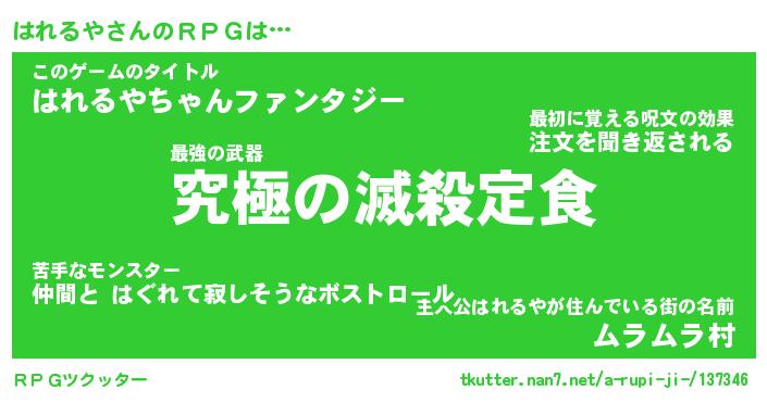 | ファンタジー風あだ名 | 『ハレフェル』『エターナルハレルヤー』 |