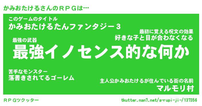 | 胡散臭い通販商品みたいなあだ名 | 『モテモテ間違いなし霊験あらたかなお札…その名も「かみおたける」』 |