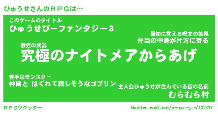 | 胡散臭い通販商品みたいなあだ名 | 『モテモテ間違いなし霊験あらたかなお札…その名も「ひゅうせ」』 |