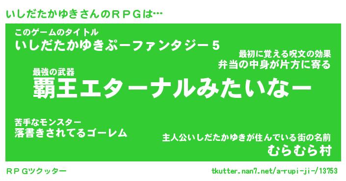 | 伝説のあだ名 | 『封印されし傭兵いしだたかゆき』 |