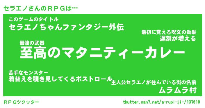 | ファンタジー風あだ名 | 『セラフェル』『エターナルセラエノー』 |