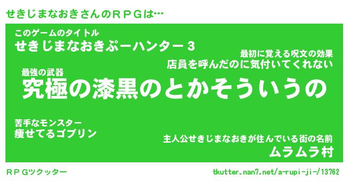 | 男性向けラノベタイトル風あだ名 | 『せきじまなおきの憂鬱』 |